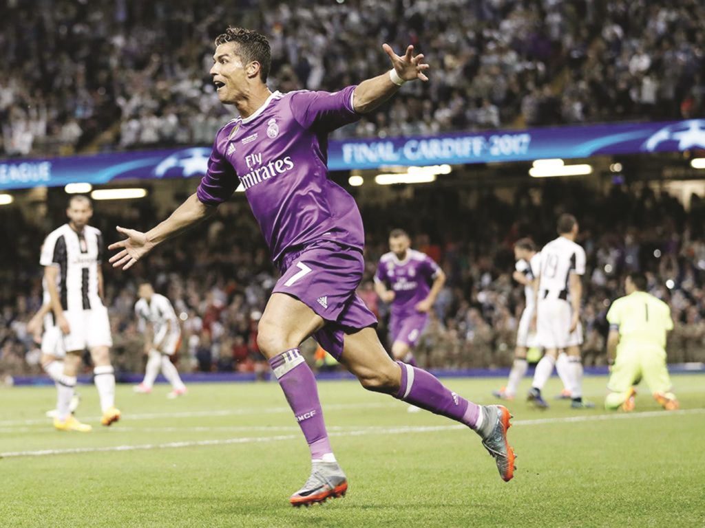 كريستيانو رونالدو نجم ريال مدريد محتفلاً بأحد أهدافه في مرمى يوفنتوس في نهائي الموسم الماضي