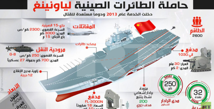 إنفو غرافيك لحاملة الطائرات الصينية لياونينغ.
