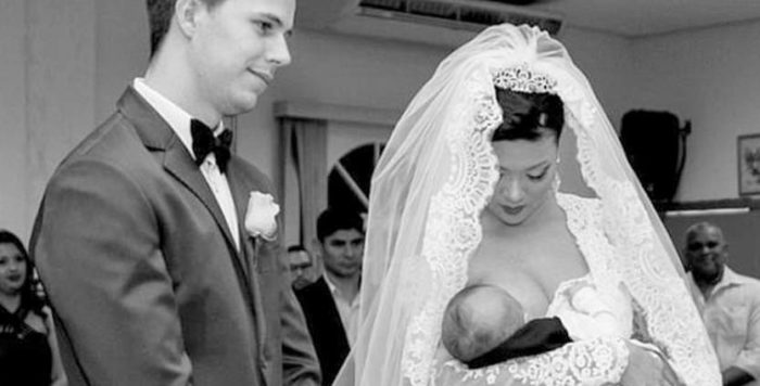 بالصور… عروس ترضع طفلها خلال حفل زفافها!