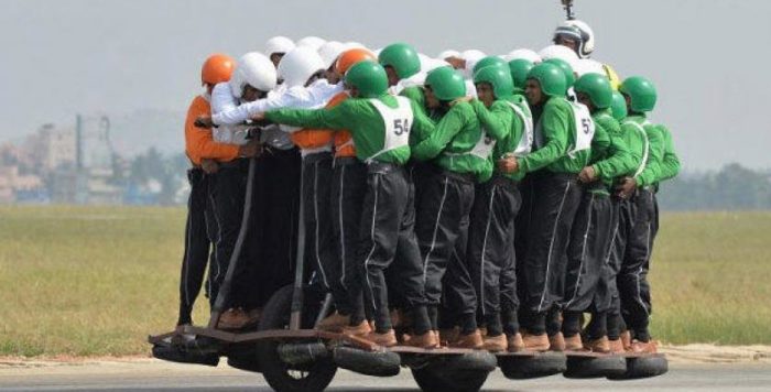 الجيش الهندي يسجل رقماً قياسياً بركوب 58 رجلاً دراجة نارية واحدة ونجح الفريق في كسر الرقم القياسي في ثالث محاولة … Continue reading 58 رجل على دراجة نارية واحدة