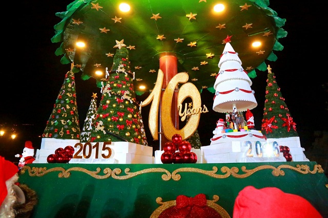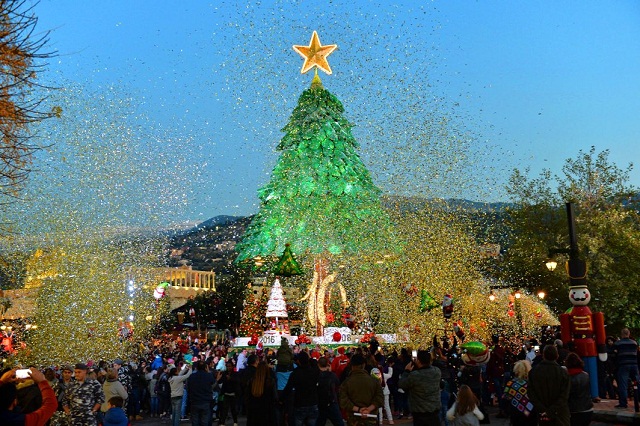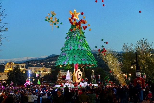 تخلّل الافتتاح، اضاءة الشّجرة العملاقة إذ يبلغ طولها 30 متراً لكن هذه السّنة، تختلف الشجرة عن سابقاتها في الاعوام السابقة، لا بل تجمعها ليعود بنا الزّمن إلى حيث كانت البداية في 2007، فيما كانت شجرة العام الماضي قد احتلّت أولى المراتب عالميًّا في صحيفة هافيغتون بوست الأميركيّة.