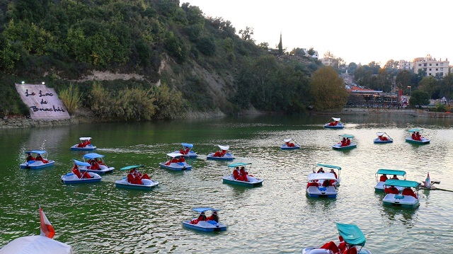 احتفال البحيرة خيمت عليه الاجواء الرائعة فيما اضفى حضور 100 “سانتا كلوز” أجواءً مسلّية ومشرقة في حين زينت العروض الميلاديّة البحيرة بلوحات فنّيّة نقلتنا الى عالم الخيال والسّحر.