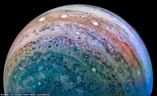 وأظهرت الدراسة أن تيارات المشتري النفاثة تصل إلى عمق 3 آلاف كلم تحت غيوم الكوكب، وهي عبارة عن ظلال من اللون الأبيض والأحمر والبرتقالي والبني والأصفر.