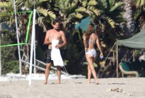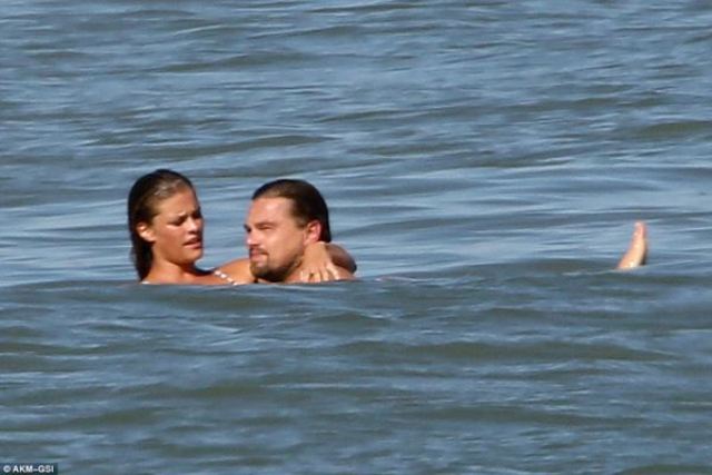 التقطت عدسات الباباراتزي النجم العالمي ليوناردو دي كابريو بلحظات رومنسية جمعته مع حبيبته عارضة الازياء نينا اكدال على الشاطئ في ماليبو.