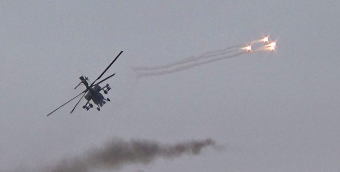 بالفيديو.. مروحيات روسية تدمر تحصينات مسلحين شمال اللاذقية