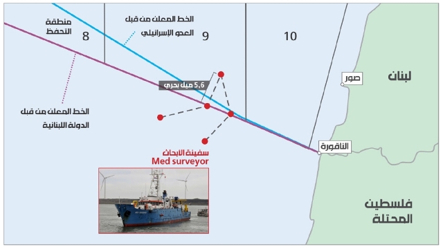 وبحسب معلومات «الأخبار»، فإن السفينة med surveyor، بدأت عملها في خدمة الاحتلال للبحث عن النفط والغاز في حقول فلسطين المحتلة في 1 نيسان من العام الماضي، وهي مزوّدة بتكنولوجيا متطورة لمسح قاع البحر، مع طاقم مؤلف من 21 تقنياً، اخترقت المياه اللبنانية يوم 27 تشرين الثاني الماضي حوالى الساعة الواحدة فجراً، ووصلت إلى عمق أقصى يبلغ 5.6 أميال بحرية، لتعود وتخرج عند الثامنة والنصف صباحاً، أي إن السفينة المعادية لم تكتفِ بالدخول إلى ما تسميه الأمم المتحدة «المنطقة المتنازع عليها» والتي تبلغ نحو 860 كلم مربعاً، بين لبنان وكيان الاحتلال، بل دخلت إلى عمق المياه اللبنانية، قاطعة مسافة 0.6 من الميل في «منطقة التحفّظ»، وخمسة أميال في عمق البلوك رقم 9.