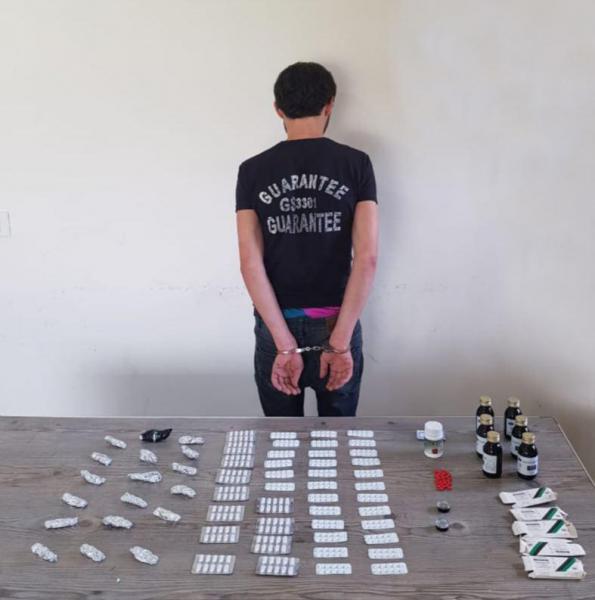 بتفتيشه والدراجة، جرى ضبط كمية من المخدرات عبارة عن: