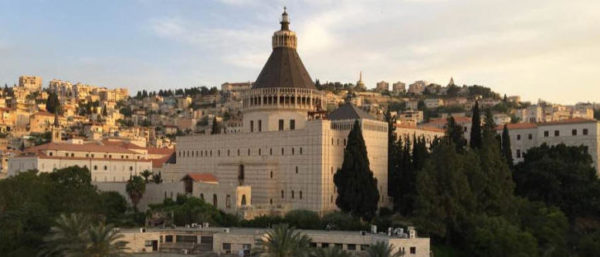 إضاءة كنيسة البشارة في الناصرة بالعلم اللبناني