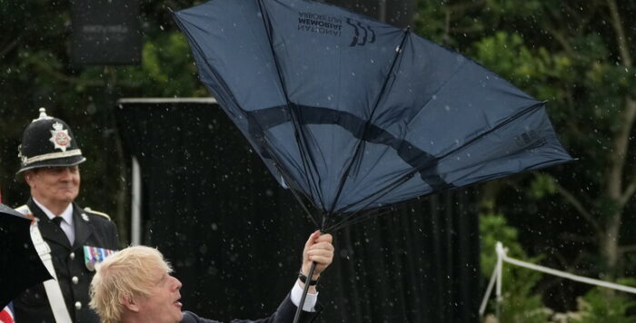بالفيديو: عندما “يتصارع” بوريس جونسون مع مظلته!