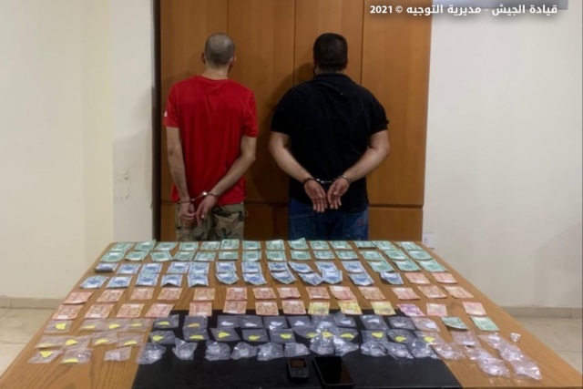 بتاريخ 7 / 8 / 2021، أوقفت دورية من مديرية المخابرات في بلدة حالات ـــ جبيل اللبناني (س.خ) والسوري (ش.ع) لقيامهما بترويج المخدرات، وضبطت بحوزتهما كمية منها، بالإضافة إلى مبلغ مالي.