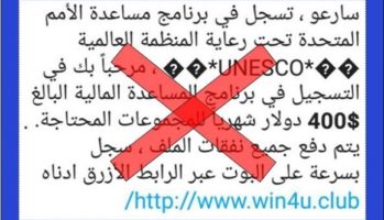 March 30, 2020 إحذروا من رابط الكتروني وهمي باسم اليونسكو عبر “واتساب”!
